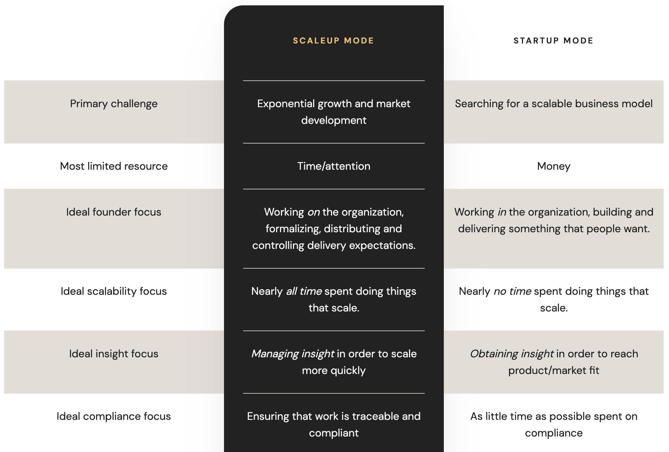 Because the primary challenge and scarcest resource of a scaleup is fundamentally different than a startup, there are several key priorities that need to change if you are hoping to acheive expontential growth.