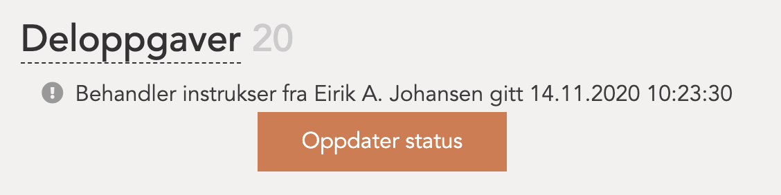 Så lenge prosessen pågår vises en melding tilsvarende denne under deloverskriften for Deloppgaver på den relevante oppgaven: