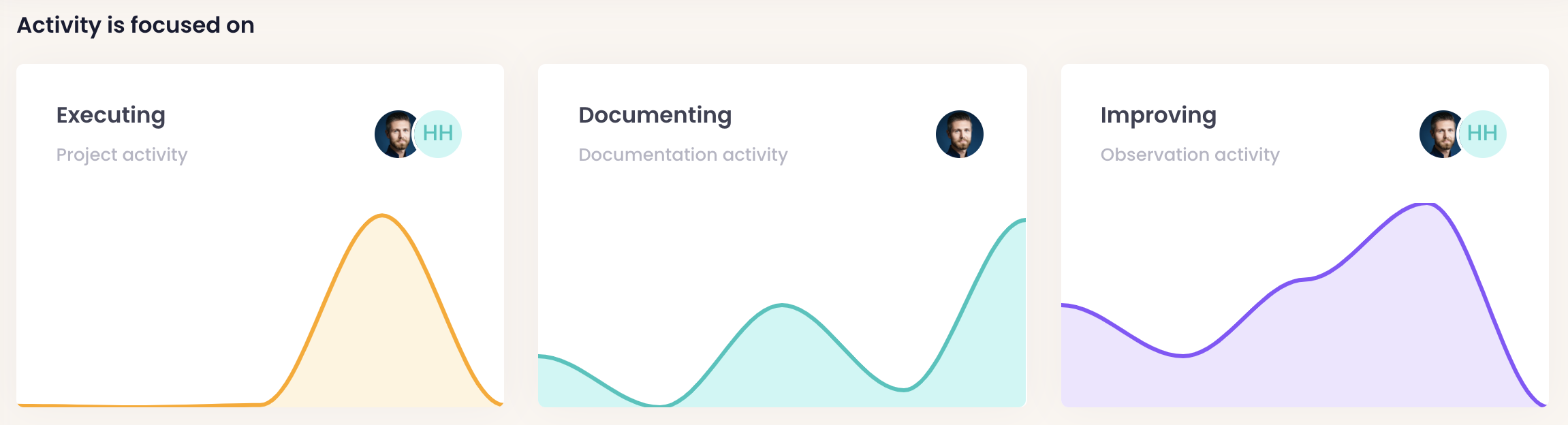 The purpose of grouping activity by executing, documenting and improving is to better expose how a team or a persons contributions is divided among short-term and long-term work. This can then be used as the basis for reflection and discussion during a team status meeting or a performance review.
