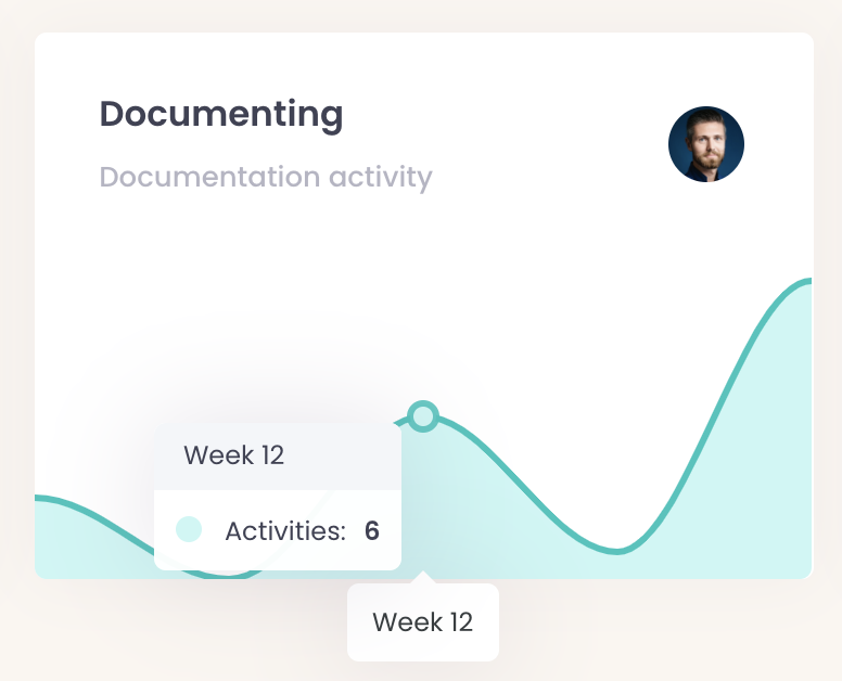 In the context of the organization, a team and a persons, you can find a visualization of the activity.