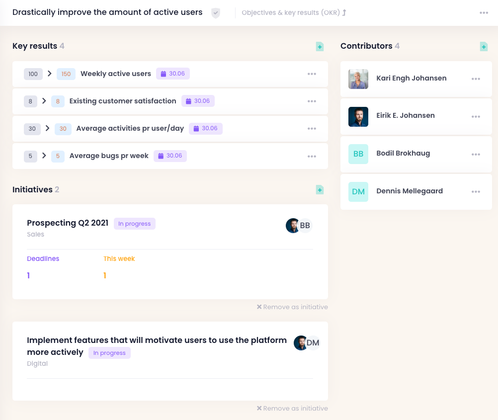 By adding initiatives you raise awareness of how work is associated with objectives as well as increase the likelihood of work actually being aligned with objectives.