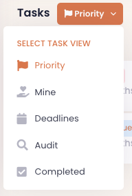 The default view is the Priority view. To change thew view, click the current view to see a list of available views: