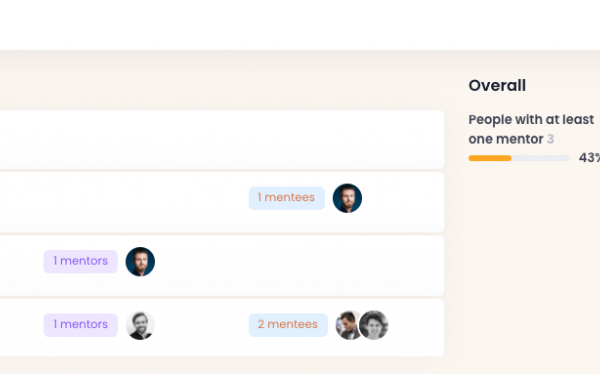 For roles invested in making sure that there exists an network of mentors to help and produce accountability (CEO/insight manager/training and development manager), there exists an overall mentorships report. The report is only accessible to platform admins.