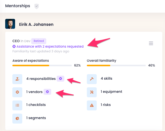Mentors can easily see which mentees require assistance (and for which expectations) from their mentorship overview.