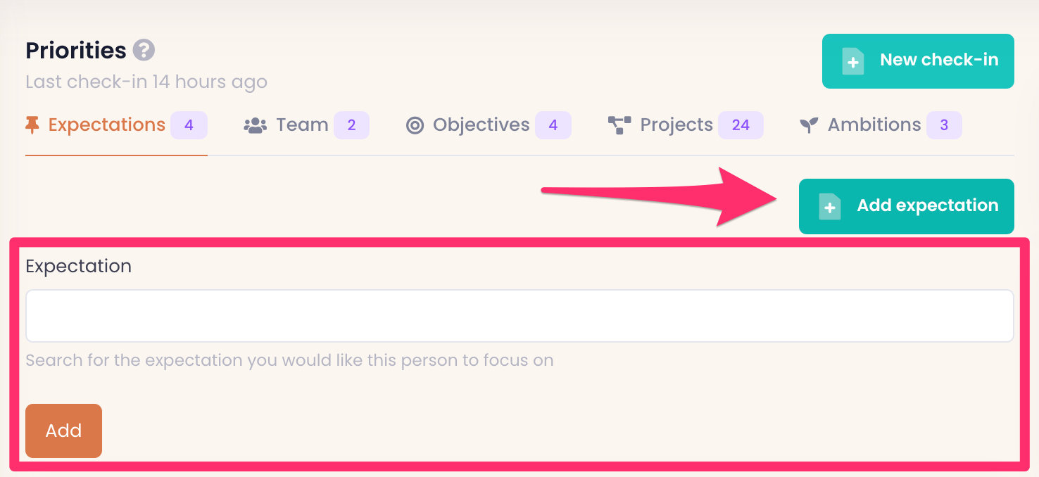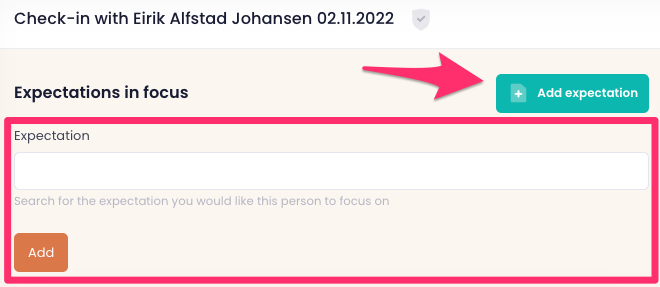 Start a check-in. When you get to the expectations step, click the "Add expectation" button.