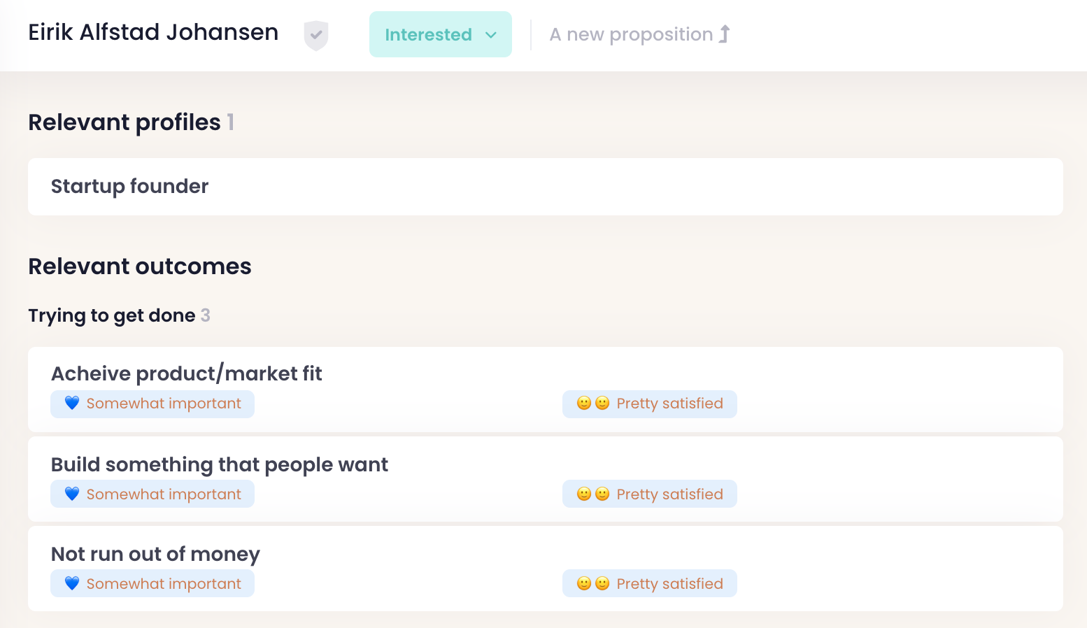 The interviewee receives a summary of the outcomes they care about and signals their interest in being contacted again in the future.
