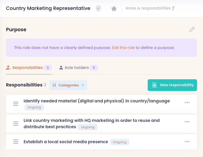 For organizations expected to grow into new markets and countries, it makes sense to reuse roles and responsibilities across different markets/countries.