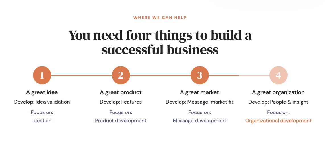 In relation to the four things needed to build a successful business, we are currently focused on step 3, achieving message-market fit.