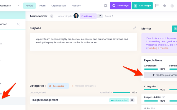 You can refamiliarize yourself with roles and skillset. The button for refamiliarization appears on the role or skillset assignment page, if there is more than 30 days since you last updated your familiarity with one of the expectations.