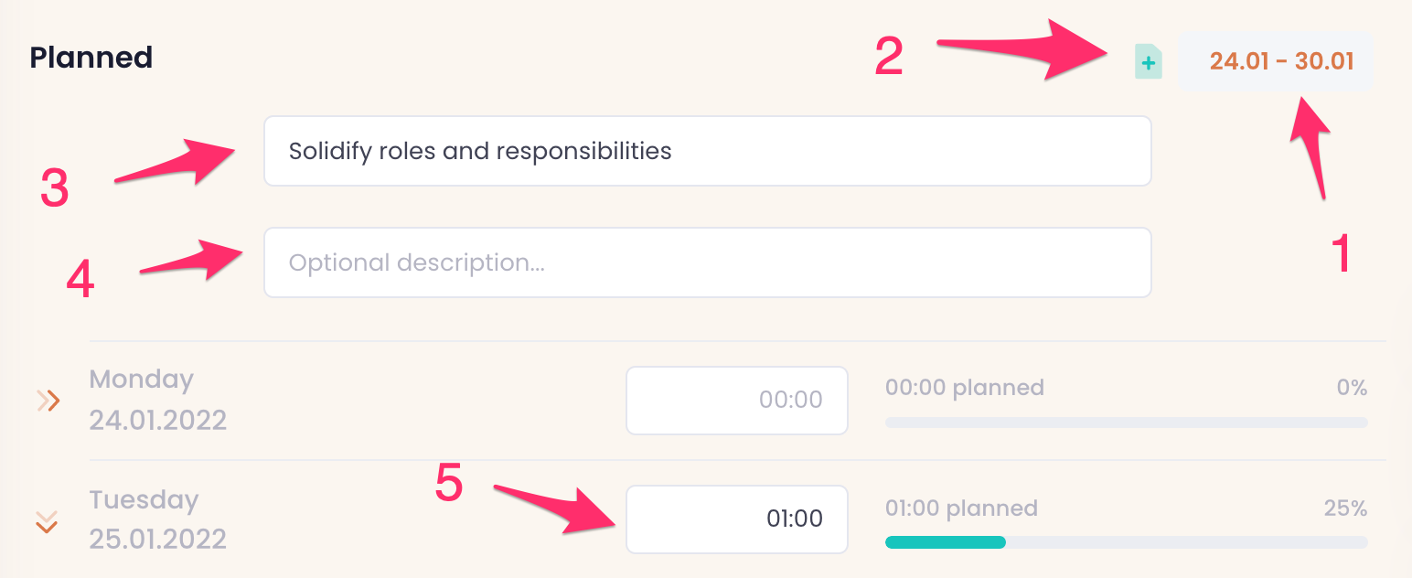 - Click the green plus icon in relation to the "Planned" header