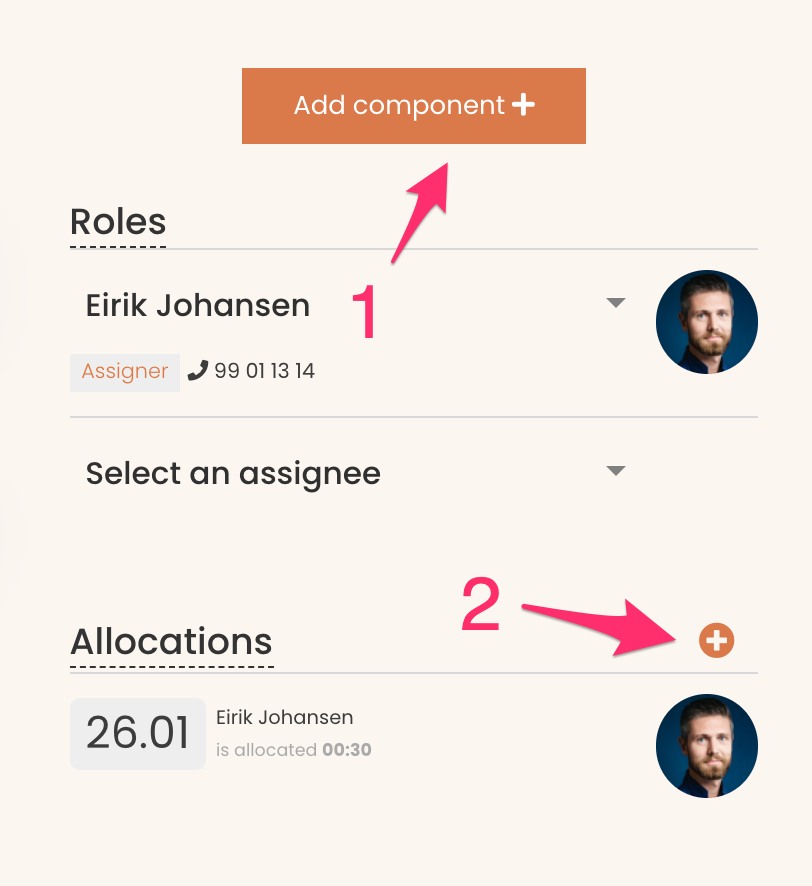 - If there are already allocations associated with the task, click the plus-ikon in relation to the Allocations-heading instead.
