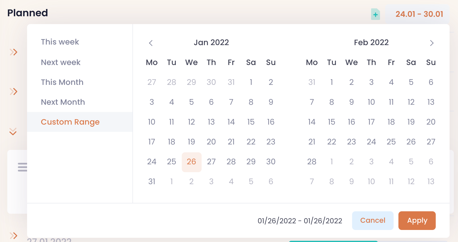 To view the allocations for another time period, use the date picker in the upper right corner to select your desired date interval.