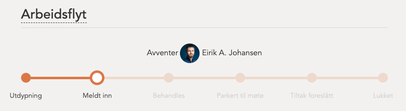 Du kan se nåværende status og hvem eller hva observasjonen avventer under deloverskriften "Arbeidsflyt":