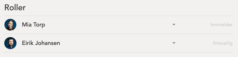 Hvem som innehar hvilke roller i en observasjon er gjengitt øverst i observasjonen. Du kan endre hvem som innehar hvilke roller i observasjonen ved å begynne å søke etter en persons navn i rollefeltet og velge personen som matcher søket.